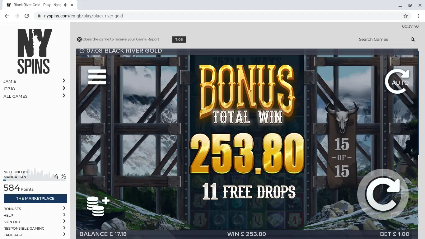 Lucky win at the point of busting out on bonus.