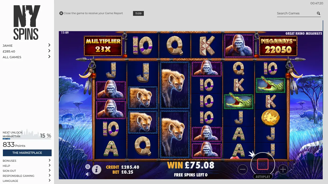 Chose random feature which gave 15 spins x10 starting.